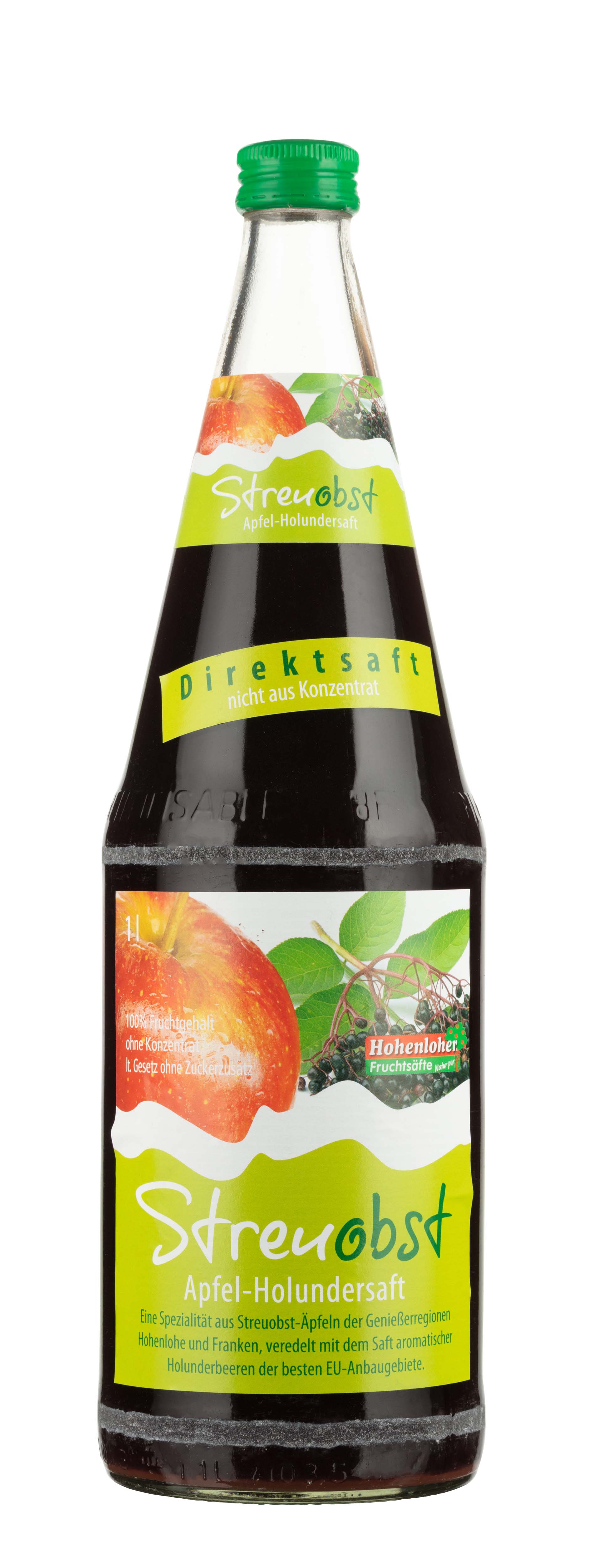 Unser Streuobst Apfel-Holundersaft steht für die regionale Herkunft der verwendeten Äpfel und die ausgezeichnte Qualität. Schmecken Sie die Äpfel, die vorweigend von Obstgärten der Region Hohenlohe und Franken stammen, gemischt mit dem tief roten, vollmündigen Saft von Holunderbeeren der besten europäischen Anbaugebiete. Herrlich erfrischend mit einem Schuss Mineralwasser oder in der kalten Jahreszeit als heißer Punsch. Besser kann Natur nicht schmecken.