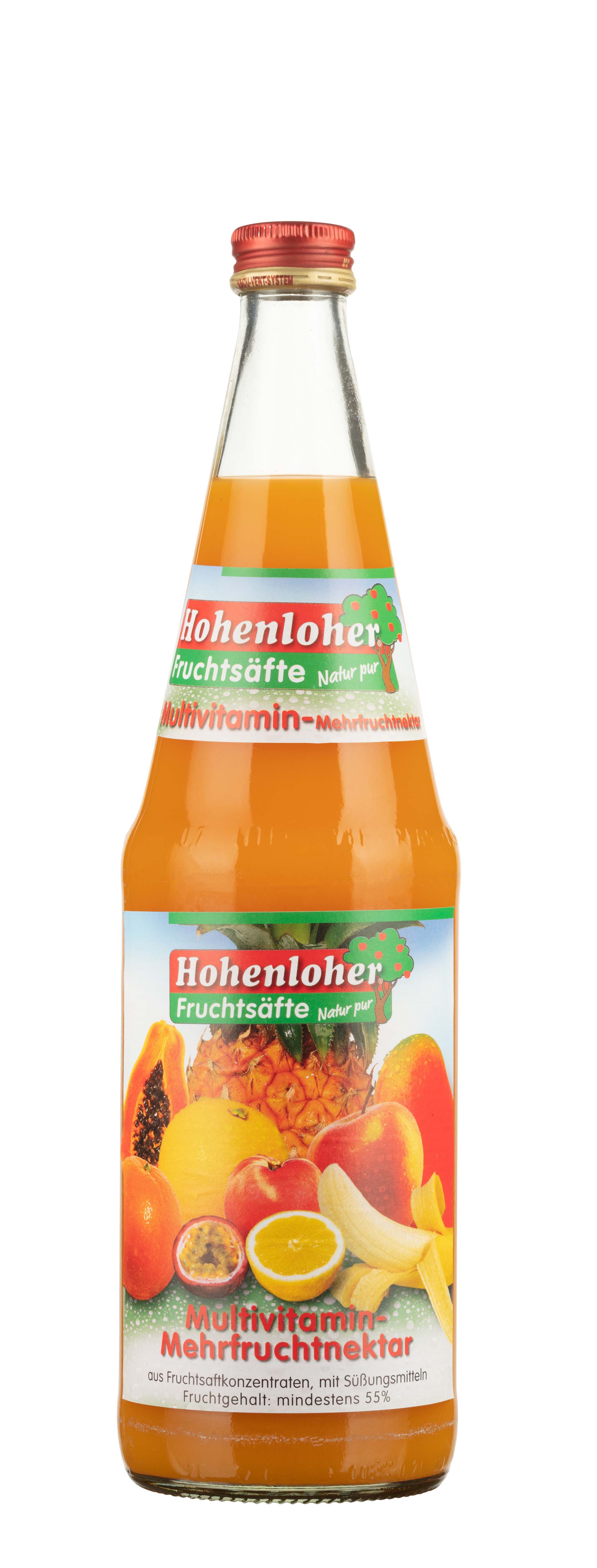 Wasser, Apfelsaft*, Orangensaft*, Ananassaft*, Zitronensaft*, Grapefruitsaft*, Passionsfruchtsaft*, Aprikosen-, Mango-, Bananen-, Guaven-, Papaya- & Pfirsichmark; Vitaminmischung ( Vitamin C / E / B6 / B1 / B12, Niacin, Pantothensäure, Beta-Carotin, Folsäure & Biotin )