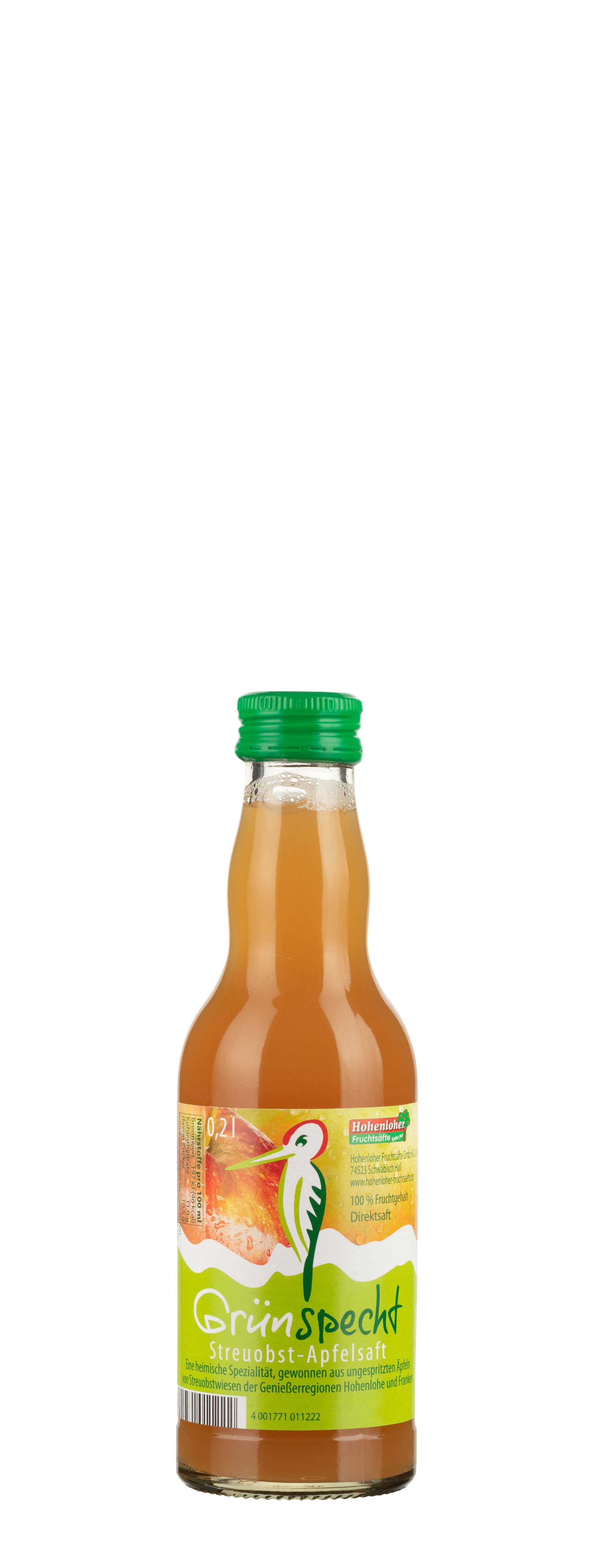 Grünspecht-Produkte stehen für regionale Herkunft und ausgezeichnete Qualität. Die Basis hierfür bilden hohe Kritierien bei der Obsterzeugung, erarbeitet mit dem FÖS und Bund Naturschutz. Der Grünspecht verkörpert als Markenzeichen symbolisch die Artenvielfalt in den heimischen Streuobstwiesen. Für Bewirtschaftung und Erhalt dieser einmaligen Kulturlandschaft erhalten die Apfel-Lieferanten einen Preisaufschlag für Ihr Obst. Grünspecht genießen und gleichzeitig Landschaft und Natur in Hohenlohe und Franken schützen. Das schmeckt! Neben den Äpfeln von FÖS-Mitgliedern verarbeiten wir Obst anderer Initiativen und Erzeuger, welche nach den gleichen Kriterien anbauen.