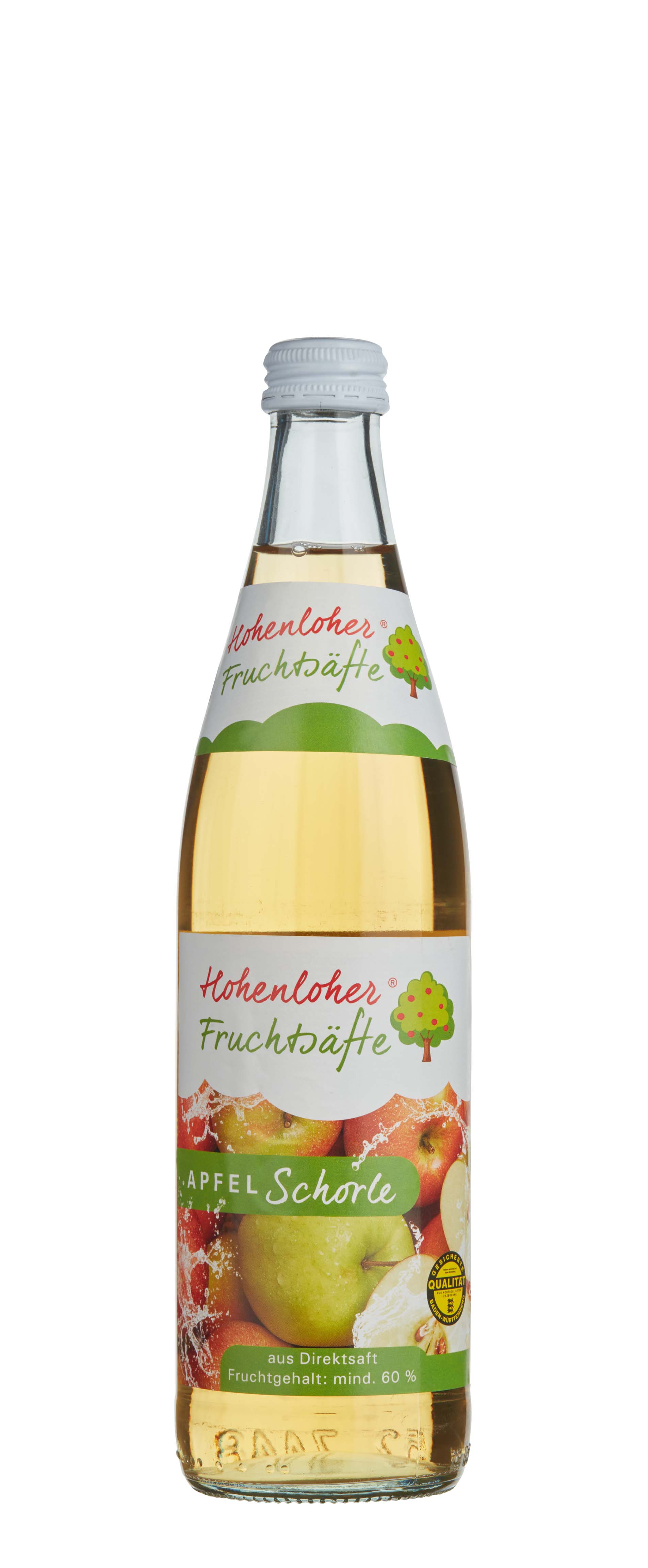 Hohenloher Apfelsaftschorle ist ein fruchtig, prickelnder Durstlöscher, der sich durch seine milde Säure und seinen natürlichen, aromatischen Geschmack auszeichnet.